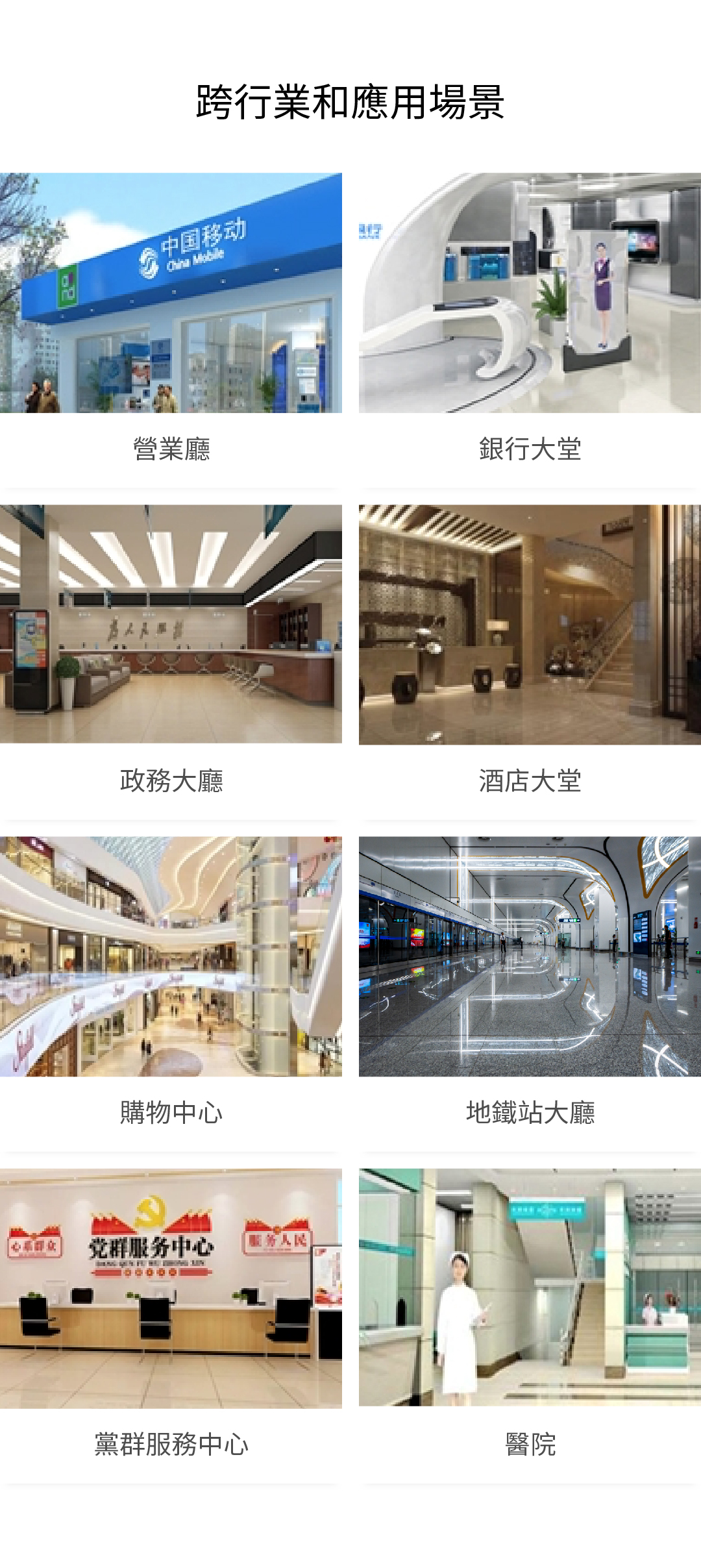 廣泛應(yīng)用於營(yíng)業(yè)廳、銀行大堂、政務(wù)大廳、購(gòu)物中心、