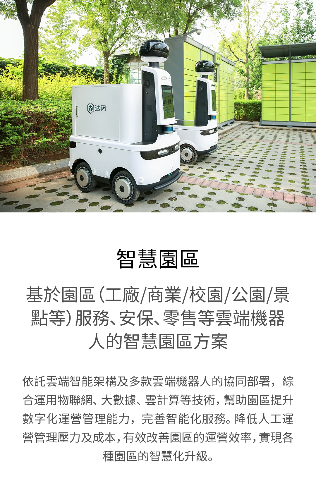 基於園區(工廠/商業/校園/公園/景點等)服務、安保、零售等雲端機器人的