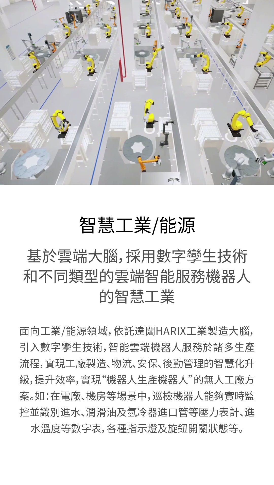 面向工業/能源領域,依託達闥HARIX工業製造大腦,引入數字孿生技術,智能雲