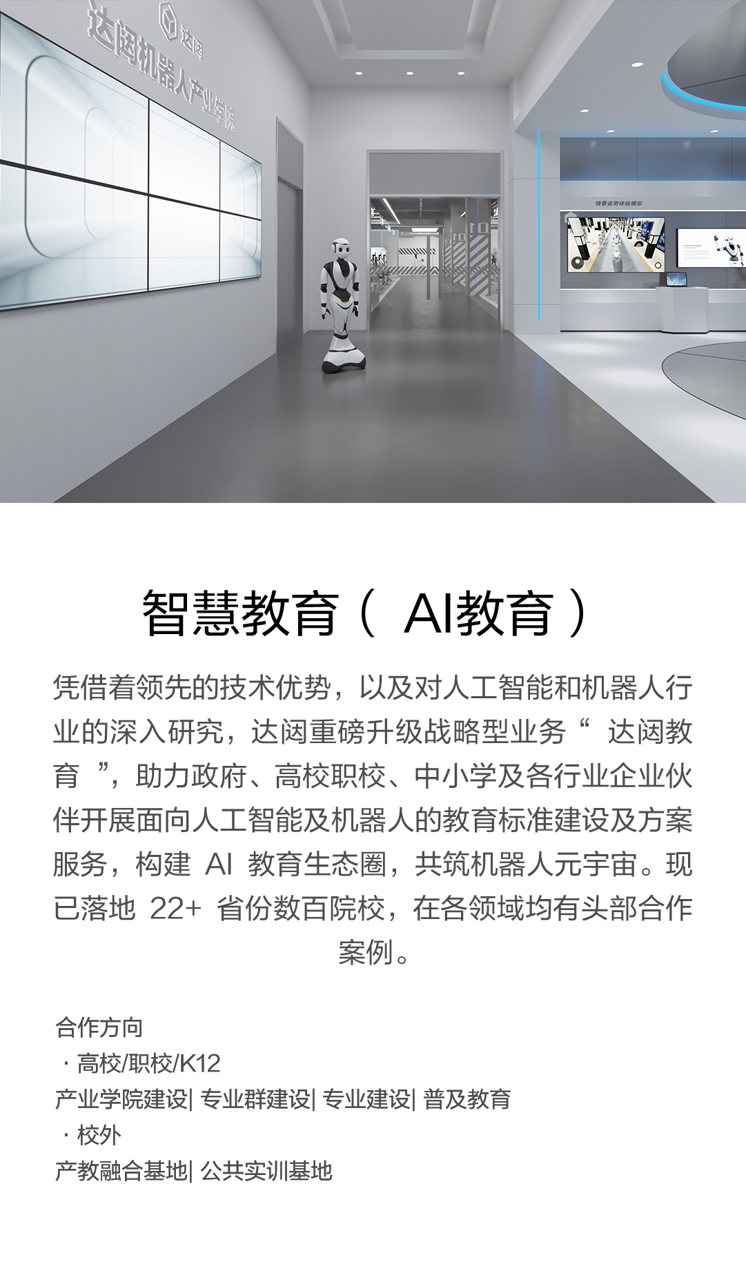 開(kāi)展面向人工智能及機(jī)器人的教育標(biāo)準(zhǔn)建設(shè)及方案服務(wù),構(gòu)建AI教育生態(tài)圈,