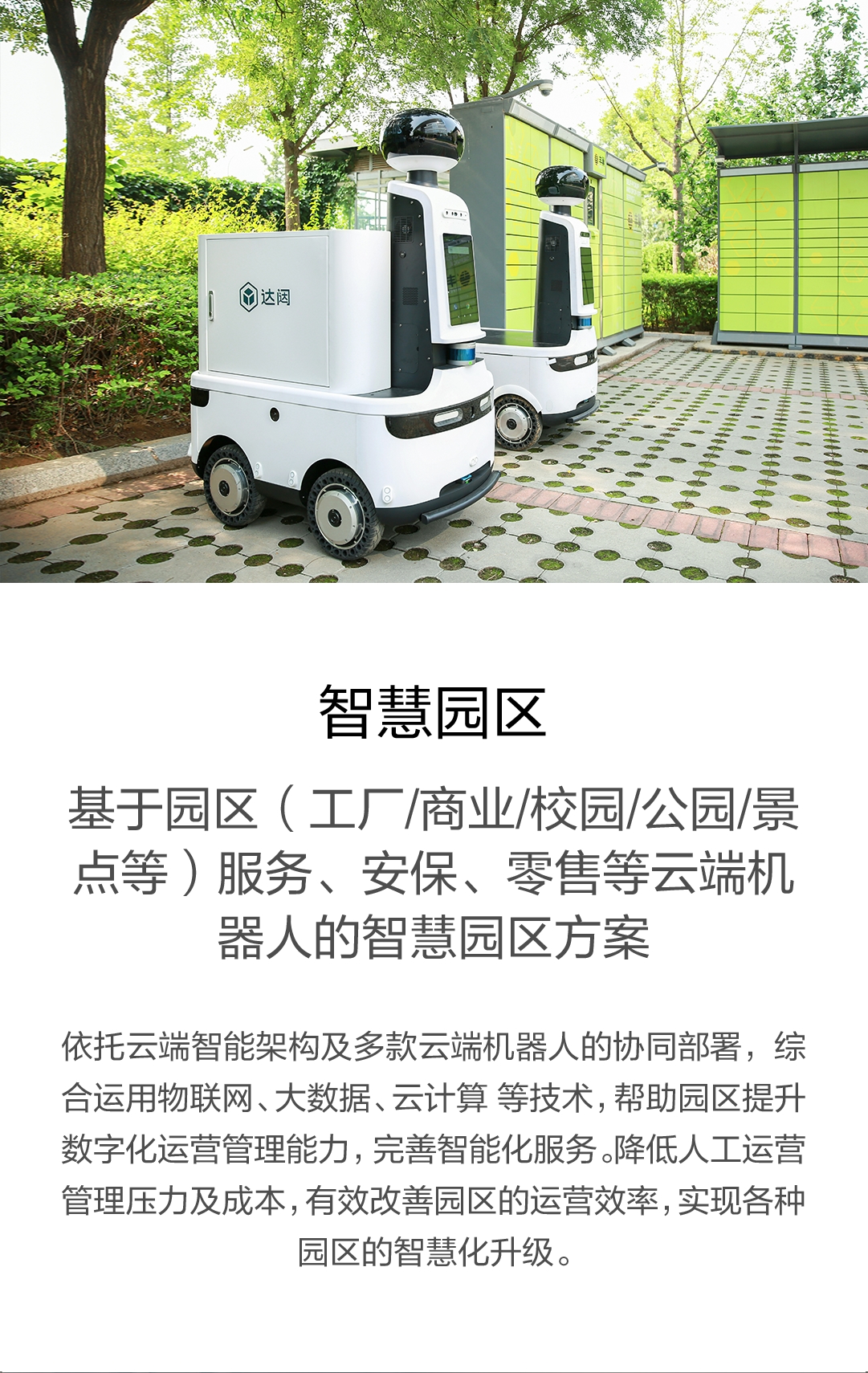基于園區(qū)(工廠/商業(yè)/校園/公園/景點(diǎn)等)服務(wù)、安保、零售等云端機(jī)器人的