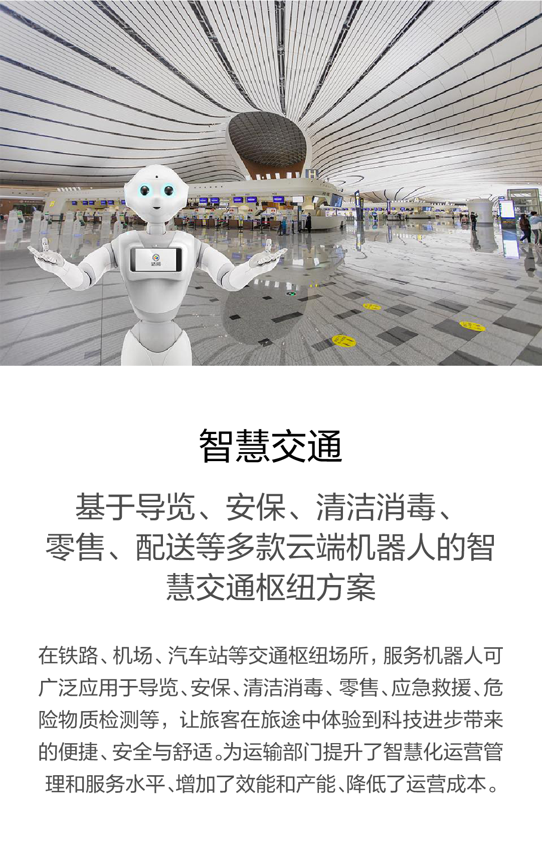 基于導(dǎo)覽、安保、清潔消毒、零售、配送等多款云端機(jī)器人的智慧交通樞紐方案