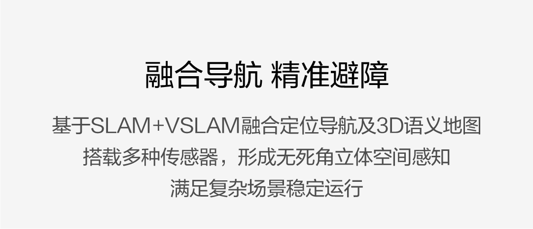基于SLAM+VSLAM融合定位導航及3D語義地圖,搭載多種傳感器,形成無死角立體空間感知,滿足復雜場景穩定運行