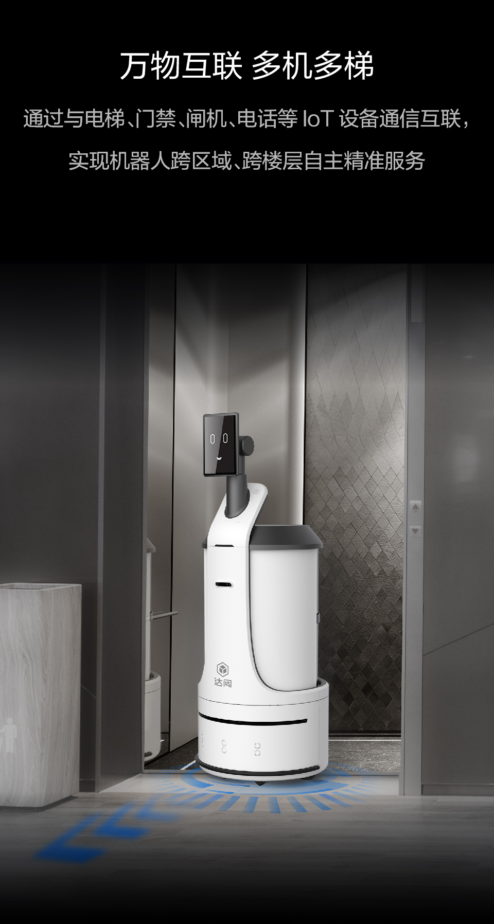 通過與電梯、門禁、閘機、電話等IoT設備通信互聯,實現機器人跨區域、跨樓層自主精準服務